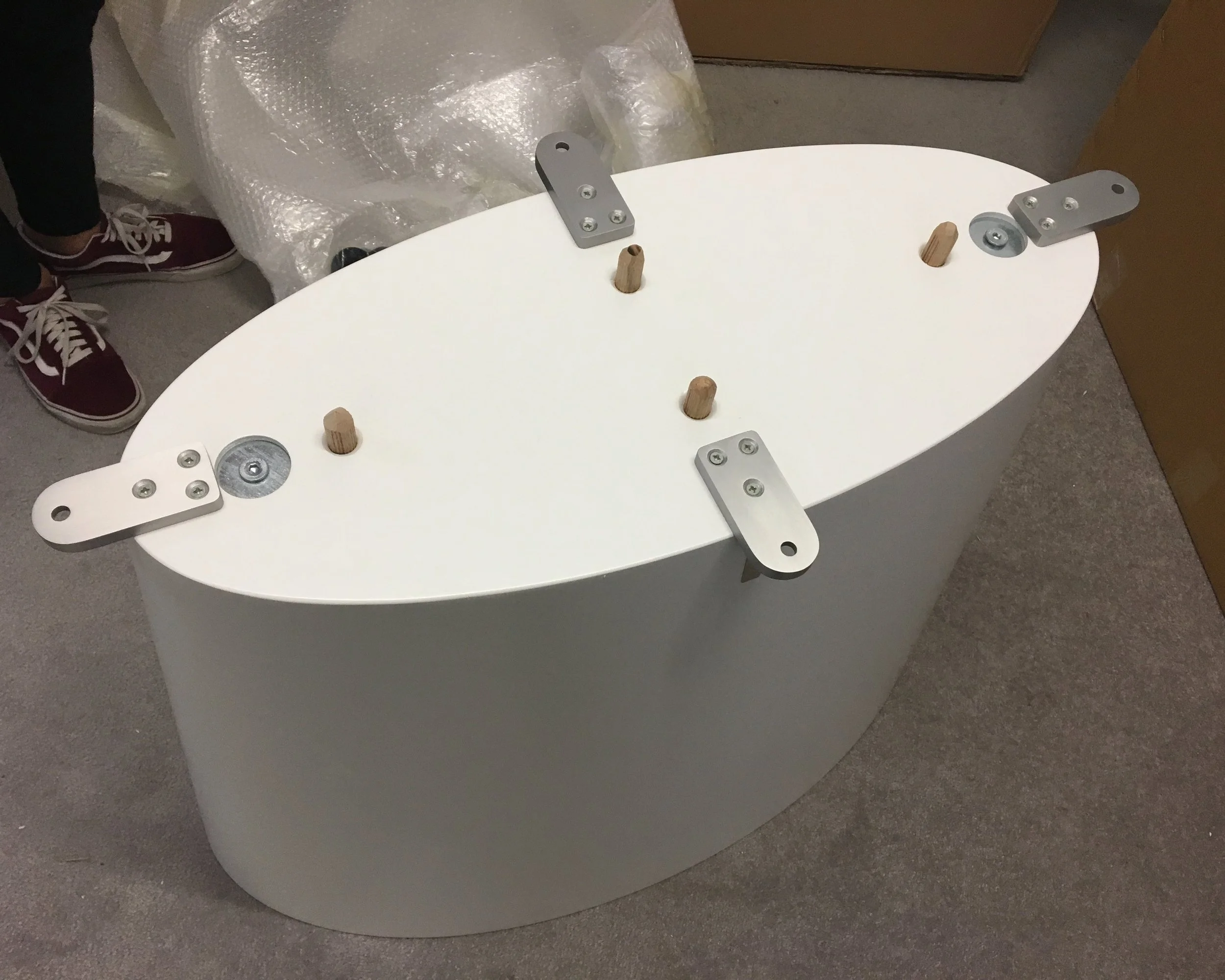 The furniture selection was one of the most memorable parts of the project. During our first round of furniture selection, we did not check if the item had a low enough centre of gravity. A heavy item is not necessarily more stable - if it has a high centre of gravity, it could become a deadly weapon if it comes loose and starts rolling around. It may look stable on flat ground, but a slight movement on a boat could tip it over.