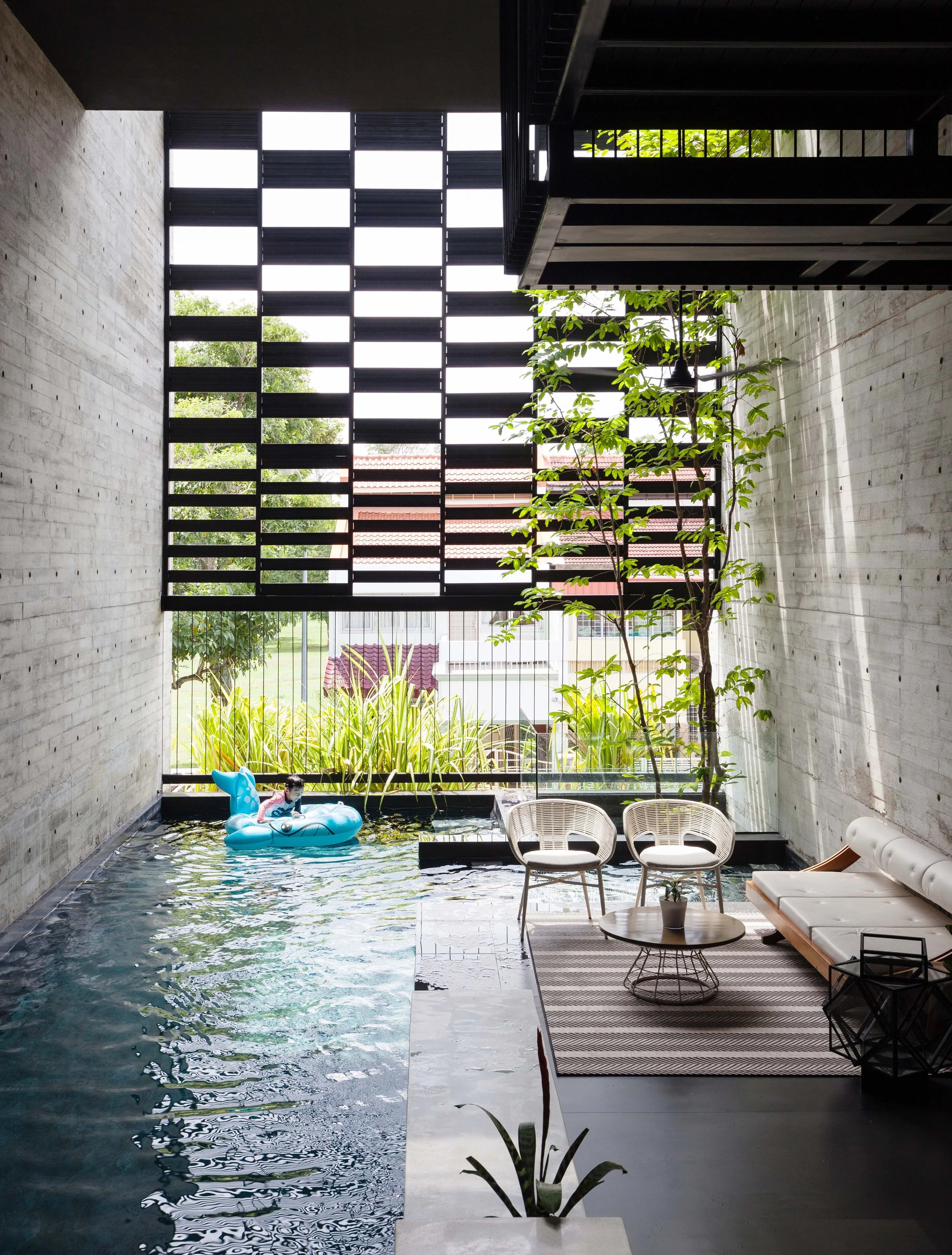 The pool is also visually connected to all levels. Any change in light of the sky can be immediately felt from within the atrium. Even the sound and smell of rain hitting the road comes right in. The heighten sense of light, sound, smell and sight is truly refreshing. What comes with this openness is actually connectivity and this is like reliving the “kampong spirit”, something the family likes to build on.