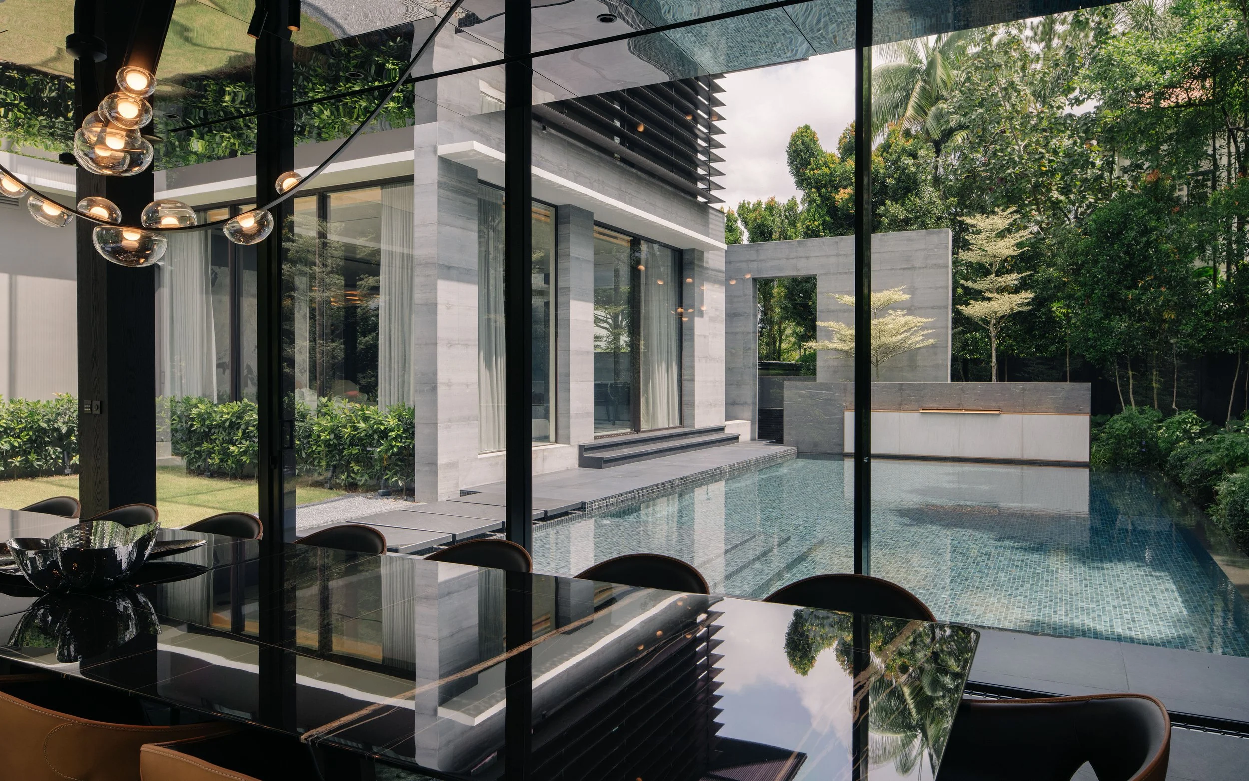 The garden is as much a part of the interior space as every carefully curated piece of furniture and artwork in the house. Instead of just seeing fragments of the gardens and nature through apetures in different parts of the house, the living spaces are designed so that anyone in the space would feel as if they are surrounded by nature.