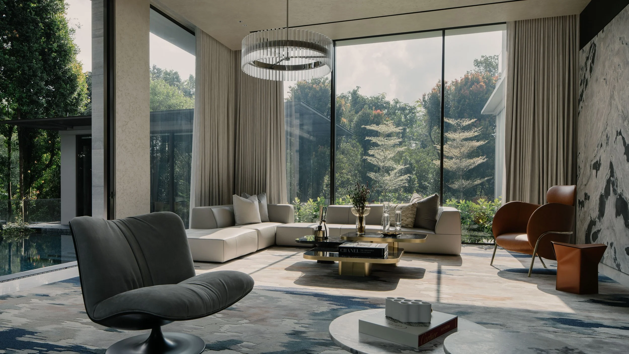 The living area is spacious enough, but with the gardens as part of the space, its grandeur is felt even more. Stepping into the house would be like watching each layer of art, furniture piece and nature (in the form of the garden lanscapes) unfold sequentially, like the way the petals of a flower open to reveal its beauty. More than a beautiful backdrop, the living space works with the landscapes around it and is another layer of the home, adding to the enjoyment and appreciation of it.